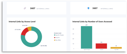 Audit of internal and external sharing links and permissions. Shows what has been shared, by whom, and link types.